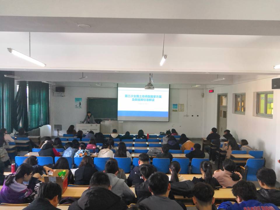 会上,袁玲老师介绍了苍穹数码技术股份有限公司基本情况,对公司多年来对学院学生工作的大力支持表示感谢,同时也希望同学们能够借此机会参与到第三次全国土地调查中来,提高操作能力、巩固理论知识。北京苍穹数码技术股份有限公司沈阳分公司主管刘海燕为同学讲述了公司简介、业务范围、基础平台等内容并着重介绍了公司在第三次全国土地调查中的任务,,并就同学们所提出的疑问进行了解答。