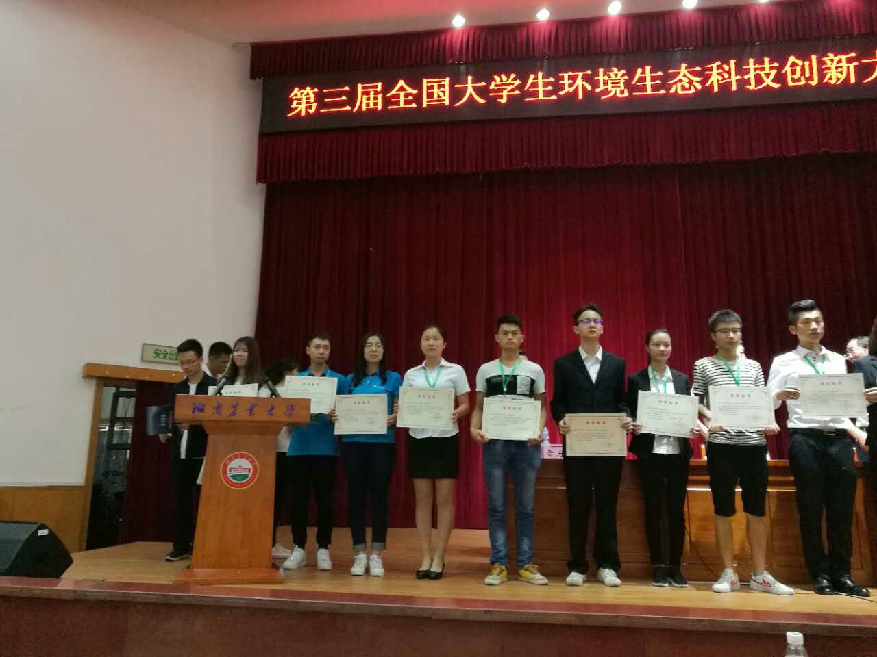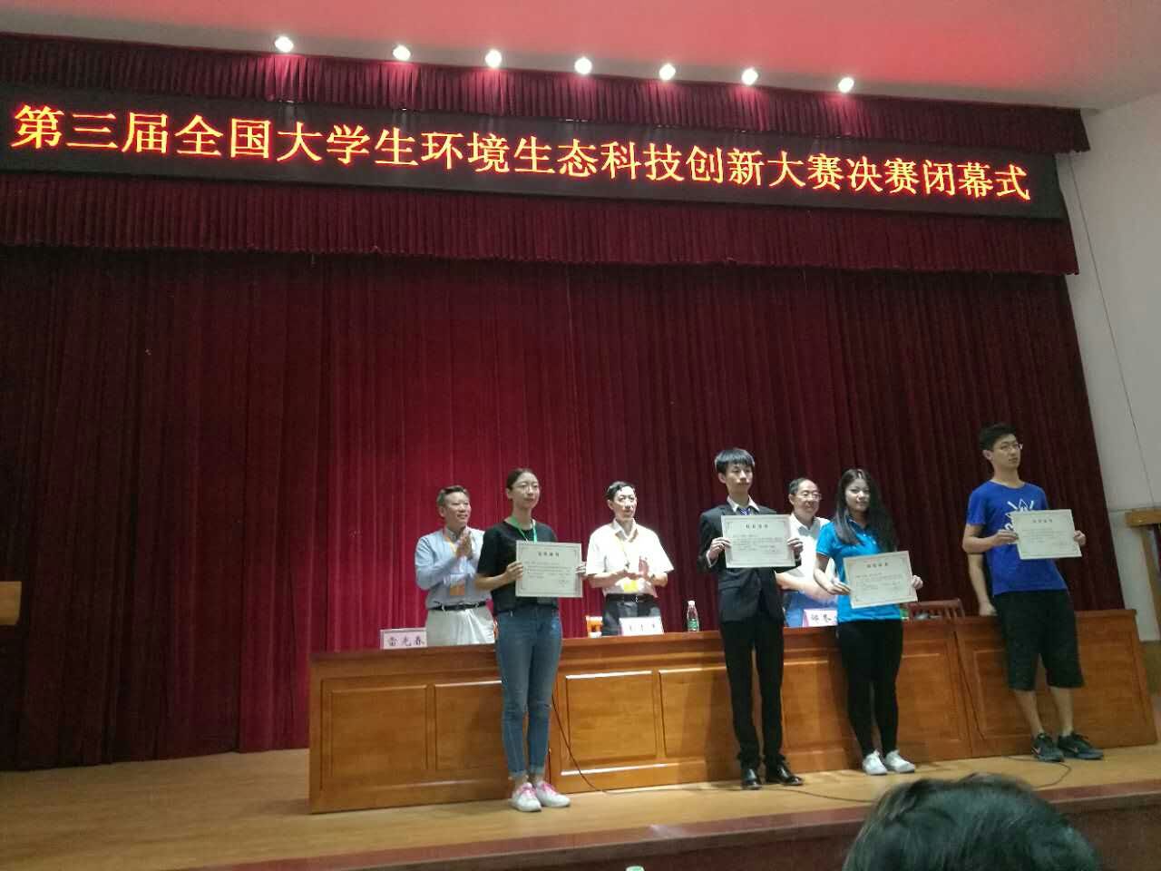 师生组成的四个团队代表学校参赛,分别获得全国大学生环境生态科技创新大赛作品类一等奖1项、二等奖1项、三等奖2项,电视知识抢答赛二等奖1项,三等奖3项,获优秀指导老师1项。另外,我校还获得大赛最佳组织奖。
