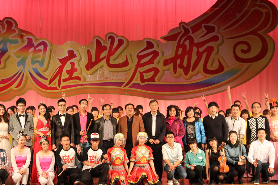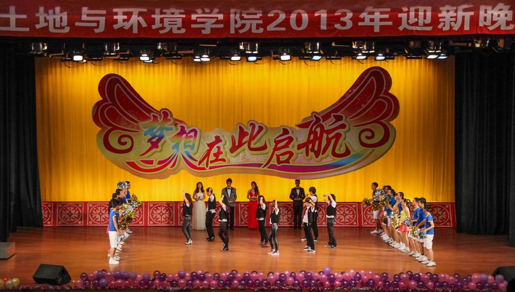 2013年迎新晚会在世纪会堂拉开帷幕。这是多年来土环学院本科生、研究生首次同台演出。校学生处、团委负责人,各院分管学生工作负责人、辅导员老师,电影天堂