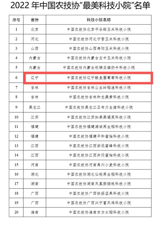 “辽宁鲅鱼圈葡萄科技小院”获评“最美科技小院”称号。