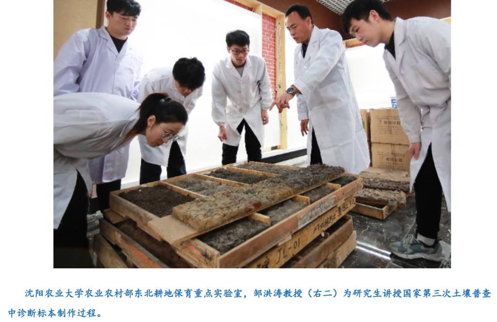 院长,邹洪涛教授带领近百名师生参与了第三次全国土壤普查工作。2023年为辽宁省培训指导“三普”技术人员2500余人次,先后承担了东北区剖面技术领队培训、外业调查与采样技术培训、内业检测培训等培训任务。同时,承担了辽宁“三普”土壤分类方案制定、80000多个表层样点和剖面样点的校核、采样底图制作、近700个剖面样点调查采样等工作任务,为高质量完成土壤普查工作贡献了“沈农力量”。