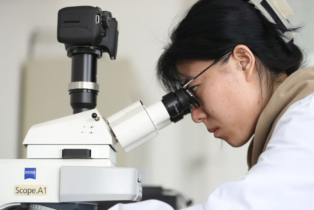 的土肥高效利用国家工程研究中心实验室,工作人员在观察土壤微形态薄片。