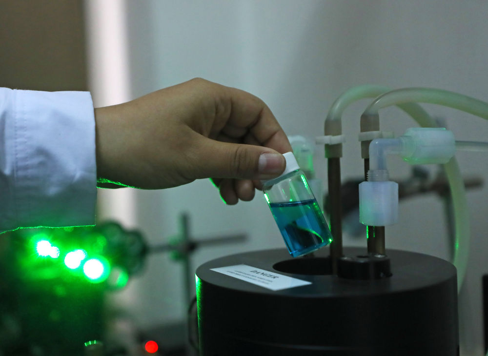 的土肥高效利用国家工程研究中心实验室,工作人员用广角度动态/静态激光散射仪监测土壤颗粒凝聚过程。