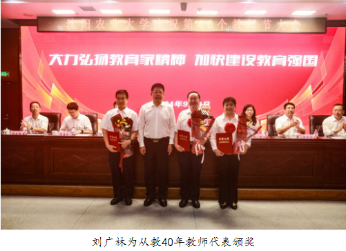 9月9日,在第40个教师节到来之际,学校在图书馆一楼报告厅举行2024年教师节庆祝大会。会上对5名教书育人模范、68名优秀教师、21名优秀教育工作者进行了表彰。学院韩晓日教授作为从事教书育人工作满40年的教师获得表彰。学院院长邹洪涛教授获评“教书育人模范”、“优秀教育工作者”称号,学院孙仲秀、范庆锋、王帅、徐英德、李娜五位教师获评“优秀教师”称号。
