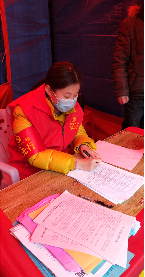 在刚过完2020年春节的第二天,村上接到通知,要求村民尽量避免外出,以控疫情。虽然在春节之前她就开始关注湖北的疫情情况,那时她就想为武汉同胞做点贡献,但她不是医护专业。正在这时,村委在初二组织联防人员,进行联防,于是她立即报名参加。在村委成员领导下排查进出本村人员,进行登记。党员同志,个个都是争先报名参加联防。在此次联防过程中,为做好工作她们甘愿承受他人的不理解和埋怨,在她们耐心地解释和劝解下,村民们也都渐渐的理解并支持她们的工作。她们只有一个念头:做好联防,为国为民,因为我们是共产党员!