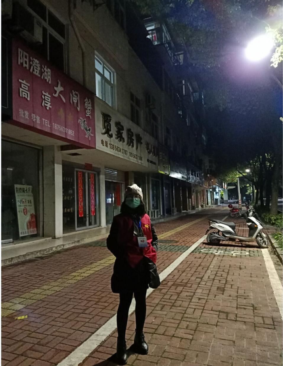她于2020年2月9日晚六点到晚十点在宣城市都市阳光社区参加“爱之助”志愿者活动。给社区居民发放通行证,一户发放一张通行证,并严格记录社区居民出入情况,控制一户居民一天只出入一次,并管制外来人员进入社区。