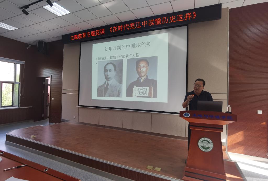 ,以《在时代变迁中读懂历史选择》为学院师生上了一堂生动的主题教育专题党课,学院领导班子参加了党课学习。