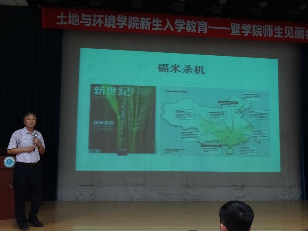 的三百多名学生表达了欢迎,并寄予了殷切希望。随后,院长汪景宽进行了专业报告,着重介绍了校情校史以及院情院史,同时向同学们阐述了资源与环境问题的严峻性并对同学们寄予期望。最后袁玲老师为本次新生教育做了总结,再次激励同学们要好好把握大学这段美好时光。