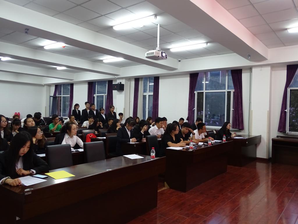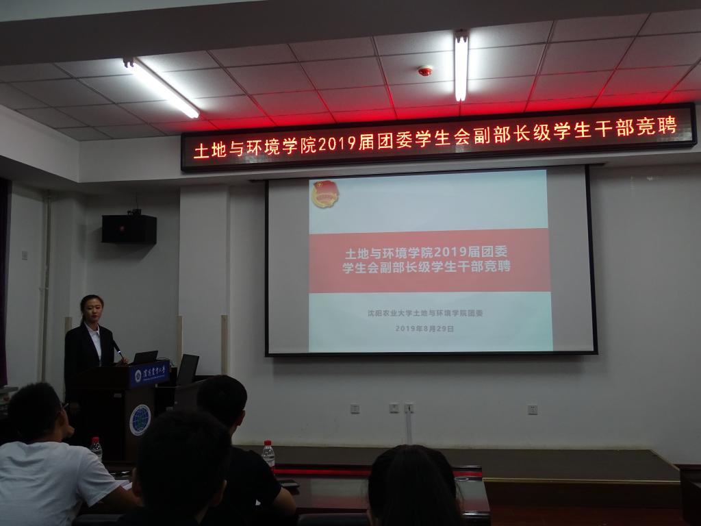 2019年8月29日晚六点,土环学院2019届团委学生会副部长级学生干部竞聘大会在新土楼102顺利举行。团委书记杜杰老师,辅导员范超老师,乔鹏升老师及部长级及以上学生干部担任评委,组织部部长张咏琪主持会议。