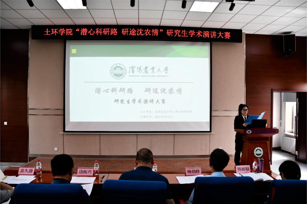 于5月25日下午在土壤楼226报告厅举办“潜心科研路 研途沈农情”研究生学术演讲大赛。学院党委书记陈志刚出席活动,学院副院长边振兴、学院副院长杨劲峰、学院副院长裴久渤及部分专业教师担任评委。
