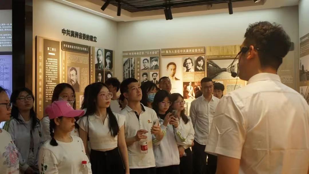 讲解员首先带同学们来到中共满洲省委历史陈列厅,为我们详细讲解和介绍了曾在中共满洲省委工作过的同志们的生平故事、工作经历、曾用物品等。接着,讲解员又带同学们参观了刘少奇旧居纪念馆。最后,参观了沈阳地区隐蔽斗争历史展。参观后,同学们集体来到宣誓广场,全体党员高声齐唱《没有共产党就没有新中国》,由研究生第二党支部发展对象白蕊同学领唱。学院专职组织员、研究生第二党支部书记韩琳老师带领全体党员重温入党誓词。