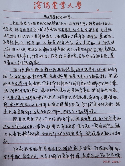 此次活动加深了同学们对学院历史和陈恩凤先生的了解,激发了同学们学农爱农的专业热情。