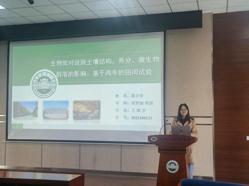 11月6日,第四期辽宁省农业资源与环境研究生学术论坛暨“恩凤论坛”报告会在土壤楼A座226报告厅成功举办。本次活动邀请了环境保护与生态建设团队2021级博士生陈宇昕进行了题目为“矿生物炭对设施土壤结构、养分、微生物群落的影响:基于两年的田间试验”的学术汇报,共一百余名研究生听取本次报告。学术报告由李嵩老师主持。