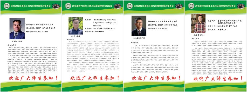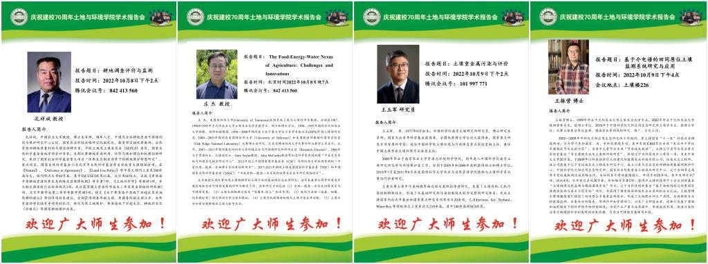 为庆祝我校成立70周年,电影天堂 特邀孔祥斌教授、庄杰教授、王玉军研究员和王振营博士于2022108-9日开展恩凤学术论坛报告会,欢迎广大师生参加!