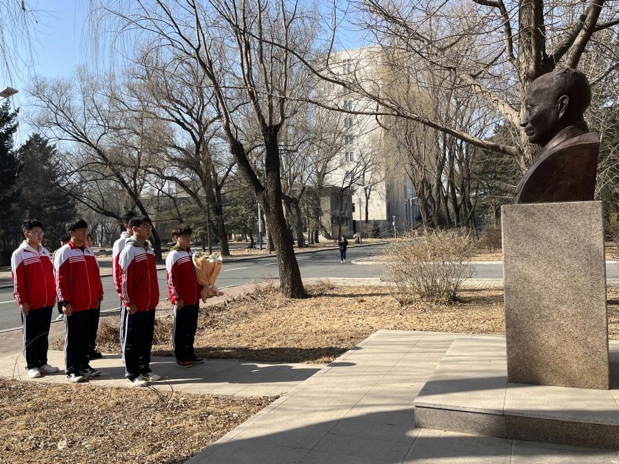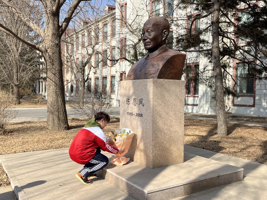 恩凤创新班学生代表:杨怀迪、王思翔、张印、赵博林、舒鑫、张馨文为陈恩凤先生献花。陈恩凤先生是电影天堂